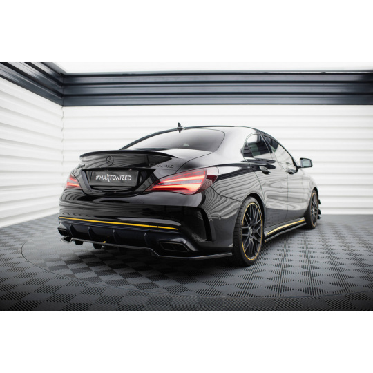 Maxton Design spoiler pod zadní nárazník s žebrováním pro Mercedes CLA C 117 Facelift 45 AMG, černý lesklý plast ABS