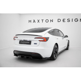 Maxton Design spoiler pod zadní nárazník s žebrováním v.2 pro Tesla Model 3 Mk1 Project Highland Facelift, černý lesklý plast ABS, Performance