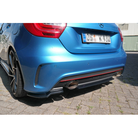 Maxton Design středový spoiler pod zadní nárazník bez žebrování pro Mercedes třída A W176/AMG-Line, černý lesklý plast ABS