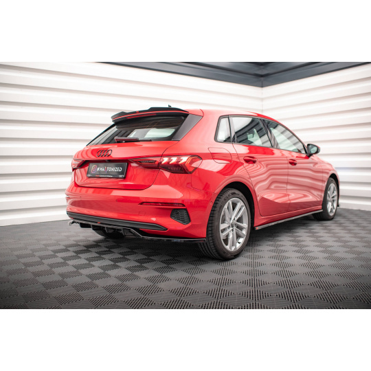 Maxton Design středový spoiler pod zadní nárazník s žebrováním pro Audi A3 8Y, černý lesklý plast ABS, Sportback