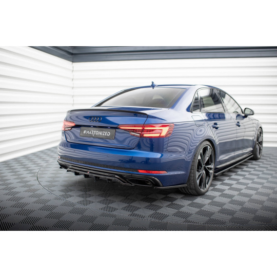 Maxton Design středový spoiler pod zadní nárazník s žebrováním pro Audi A4 B9 Competition, černý lesklý plast ABS