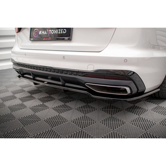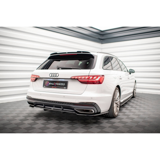 Maxton Design středový spoiler pod zadní nárazník s žebrováním pro Audi A4 B9 FL, černý lesklý plast ABS, S-Line