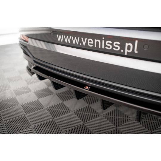 Maxton Design středový spoiler pod zadní nárazník s žebrováním pro Audi Q3 F3 S-Line, černý lesklý plast ABS