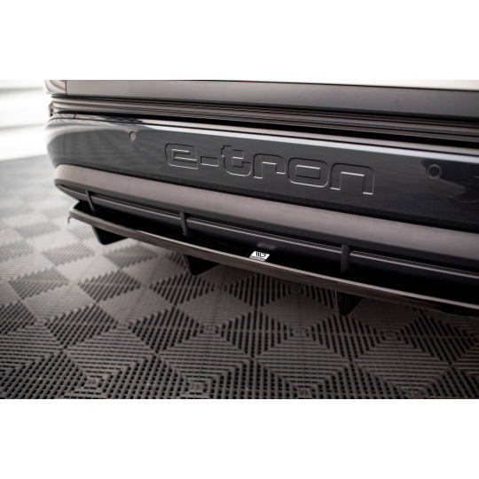 Maxton Design středový spoiler pod zadní nárazník s žebrováním pro Audi Q4 e-tron Mk1 Sportback, černý lesklý plast ABS