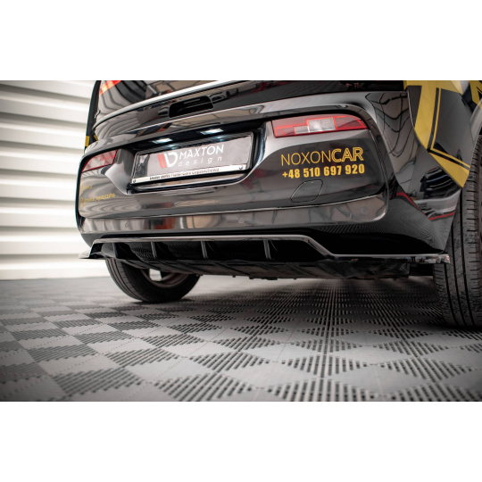 Maxton Design středový spoiler pod zadní nárazník s žebrováním pro BMW i3 Mk1 Facelift, černý lesklý plast ABS