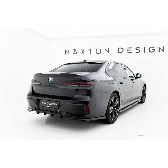 Maxton Design středový spoiler pod zadní nárazník s žebrováním pro BMW i7 G70 M-Pack, černý lesklý plast ABS, eDrive50 xDrive, xDrive60 xDrive