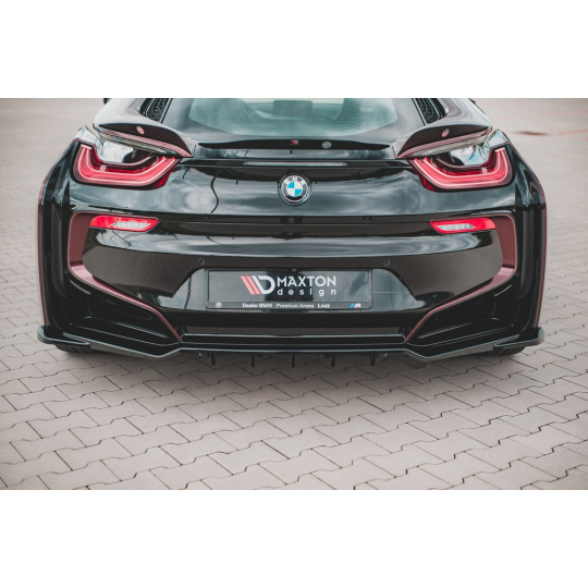 Maxton Design středový spoiler pod zadní nárazník s žebrováním pro BMW i8, černý lesklý plast ABS