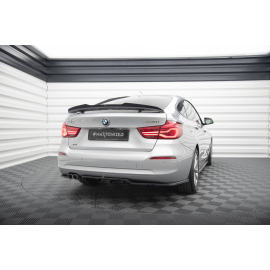 Maxton Design středový spoiler pod zadní nárazník s žebrováním pro BMW řada 3 GT F34 Facelift, černý lesklý plast ABS