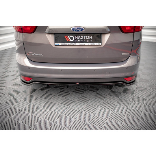Maxton Design středový spoiler pod zadní nárazník s žebrováním pro Ford C-max Mk2, černý lesklý plast ABS