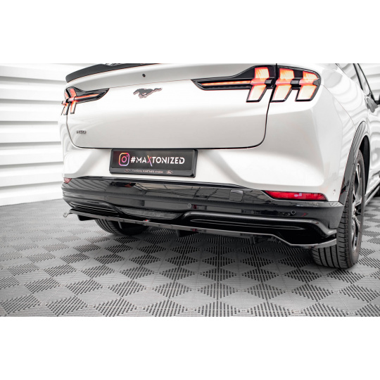 Maxton Design středový spoiler pod zadní nárazník s žebrováním pro Ford Mustang Mach-E Mk1, černý lesklý plast ABS