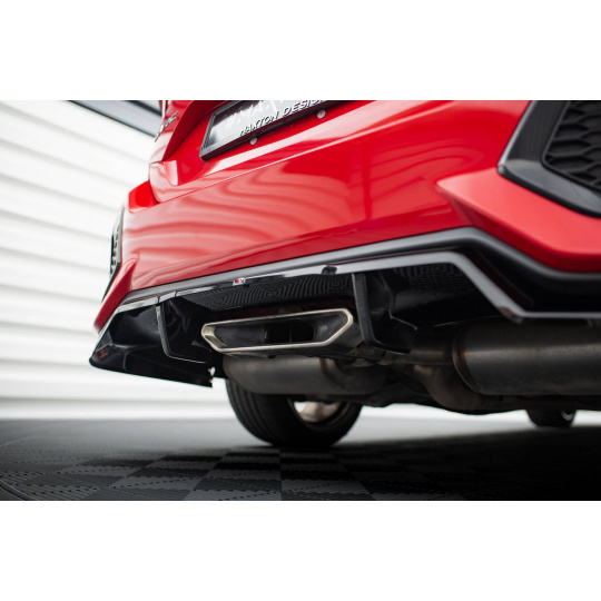 Maxton Design středový spoiler pod zadní nárazník s žebrováním pro Honda Civic Mk10 SI, černý lesklý plast ABS
