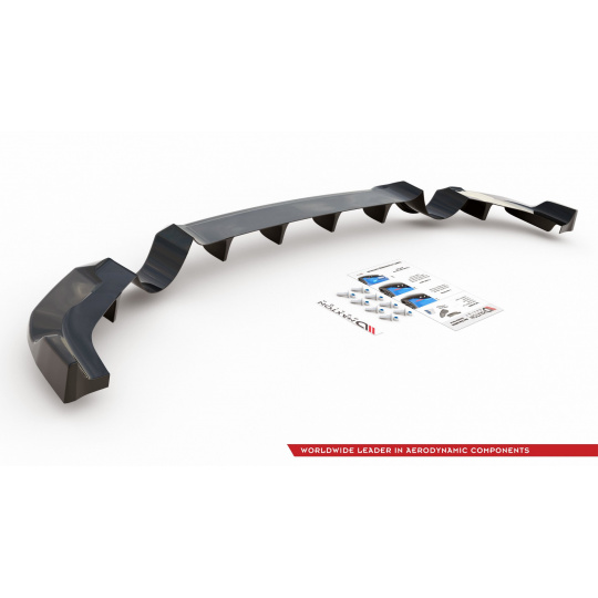 Maxton Design středový spoiler pod zadní nárazník s žebrováním pro Hyundai i30 N Mk3, černý lesklý plast ABS, hatchback