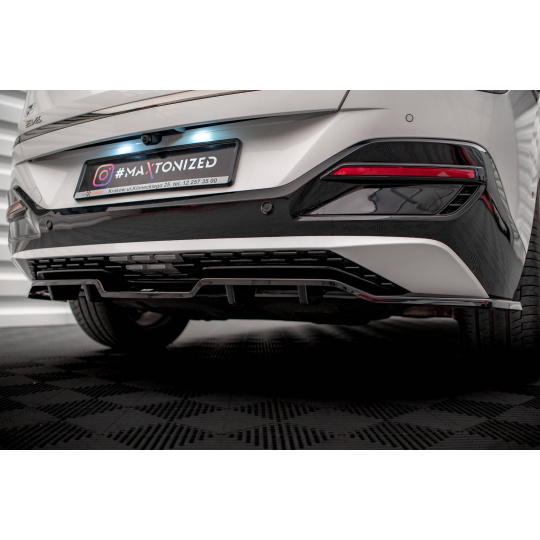 Maxton Design středový spoiler pod zadní nárazník s žebrováním pro Kia EV6 Mk1 GT-Line, černý lesklý plast ABS