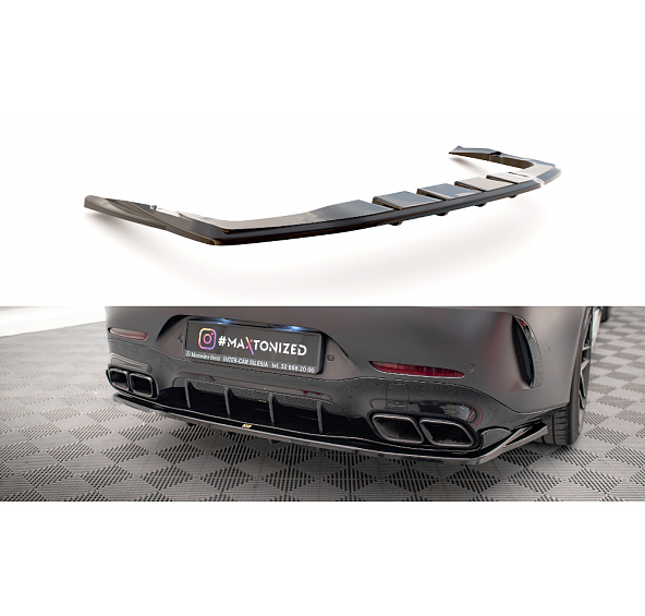 Maxton Design středový spoiler pod zadní nárazník s žebrováním pro Mercedes AMG GT 4 -Door Coupe GT 63S Aero, plast ABS bez povrchové úpravy