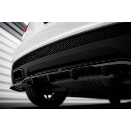 Maxton Design středový spoiler pod zadní nárazník s žebrováním pro Mercedes třída A W176 45 AMG, černý lesklý plast ABS
