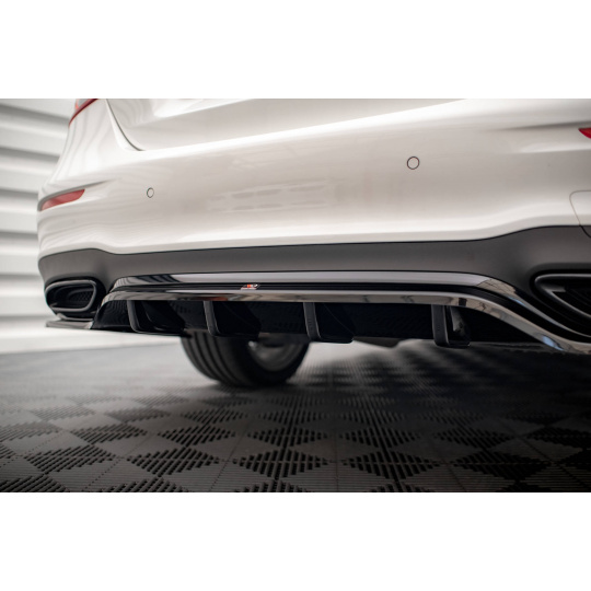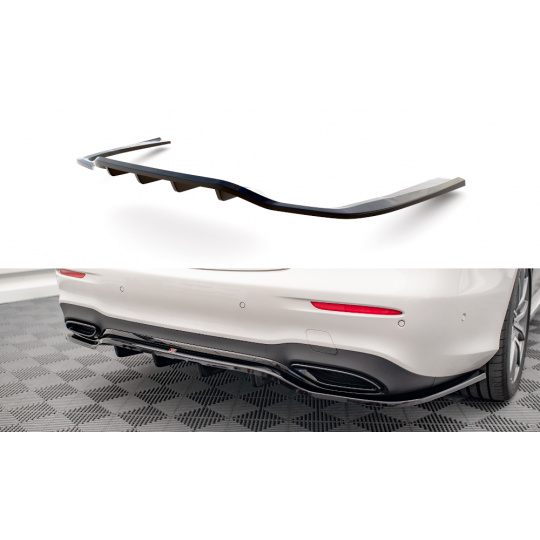 Maxton Design středový spoiler pod zadní nárazník s žebrováním pro Mercedes třída E W213 Facelift/AMG-Line/Sedan, černý lesklý plast ABS