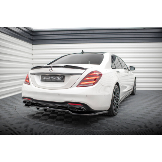 Maxton Design středový spoiler pod zadní nárazník s žebrováním pro Mercedes třída S W222 AMG-Line Facelift, černý lesklý plast ABS