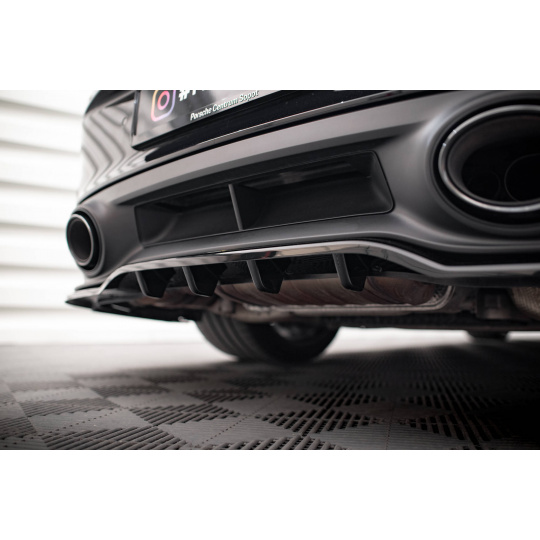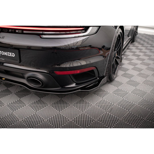 Maxton Design středový spoiler pod zadní nárazník s žebrováním pro Porsche 911 992 Turbo S, černý lesklý plast ABS