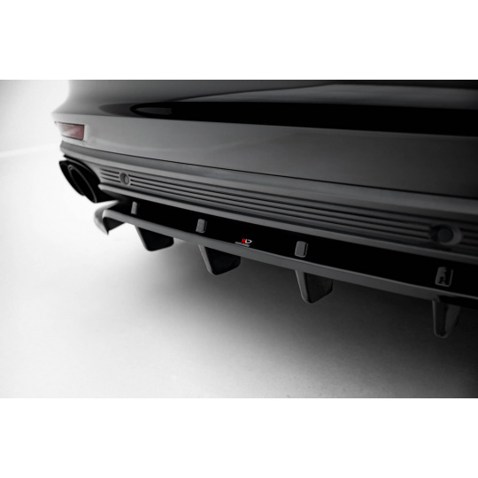 Maxton Design středový spoiler pod zadní nárazník s žebrováním pro Porsche Panamera 971 E-Hybrid, černý lesklý plast ABS