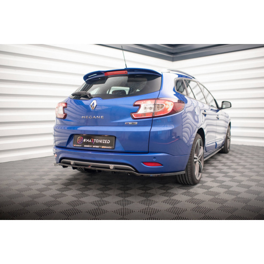 Maxton Design středový spoiler pod zadní nárazník s žebrováním pro Renault Megane Mk3 Facelift, černý lesklý plast ABS, GT Line Grandtour