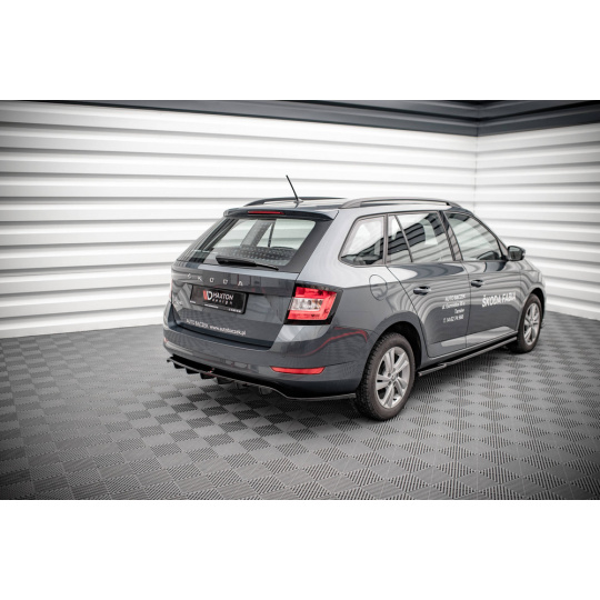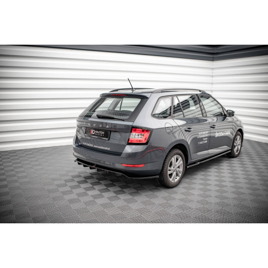 Maxton Design středový spoiler pod zadní nárazník s žebrováním pro Škoda Fabia MK3 Facelift, černý lesklý plast ABS