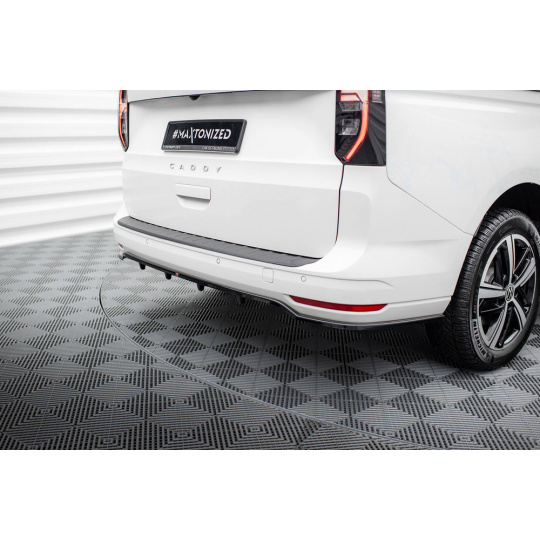 Maxton Design středový spoiler pod zadní nárazník s žebrováním pro Volkswagen Caddy Mk5, černý lesklý plast ABS, Maxi