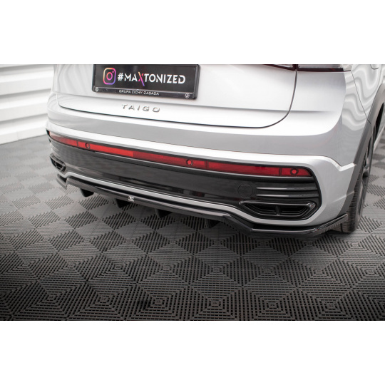 Maxton Design středový spoiler pod zadní nárazník s žebrováním pro Volkswagen Taigo Mk1 R-Line, černý lesklý plast ABS