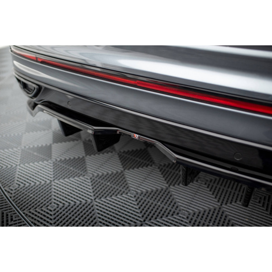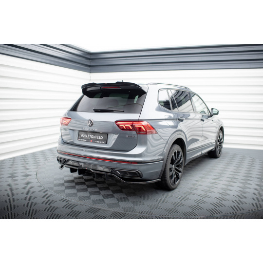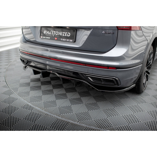 Maxton Design středový spoiler pod zadní nárazník s žebrováním pro Volkswagen Tiguan Mk2 Facelift, černý lesklý plast ABS, Allspace R-Line