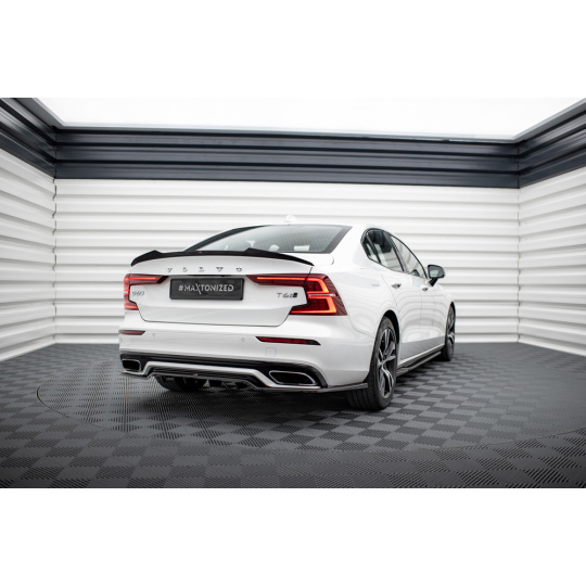Maxton Design středový spoiler pod zadní nárazník s žebrováním pro Volvo V60 R-Design Mk3, černý lesklý plast ABS
