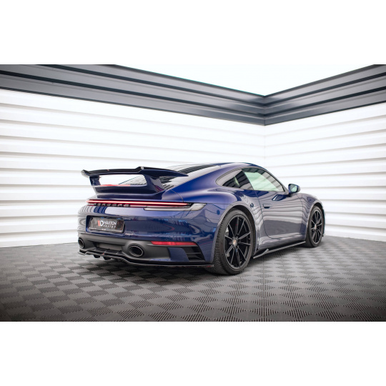Maxton Design středový spoiler pod zadní nárazník s žebrováním v.1 pro Porsche 911 992 Carrera/Carrera S Aero, černý lesklý plast ABS