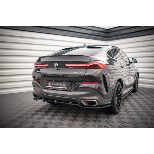 Maxton Design středový spoiler pod zadní nárazník s žebrováním v.2 pro BMW X6 G06 /M-Pack, černý lesklý plast ABS
