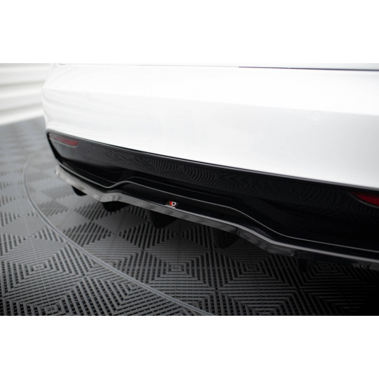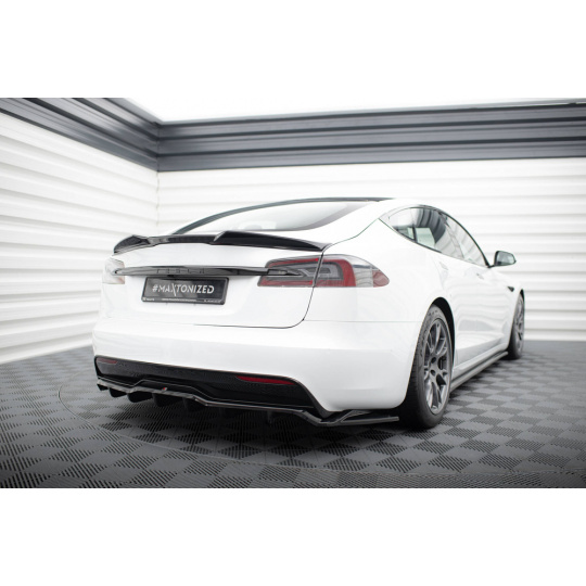 Maxton Design středový spoiler pod zadní nárazník s žebrováním v.2 pro Tesla Model S Plaid Mk1 Facelift, černý lesklý plast ABS