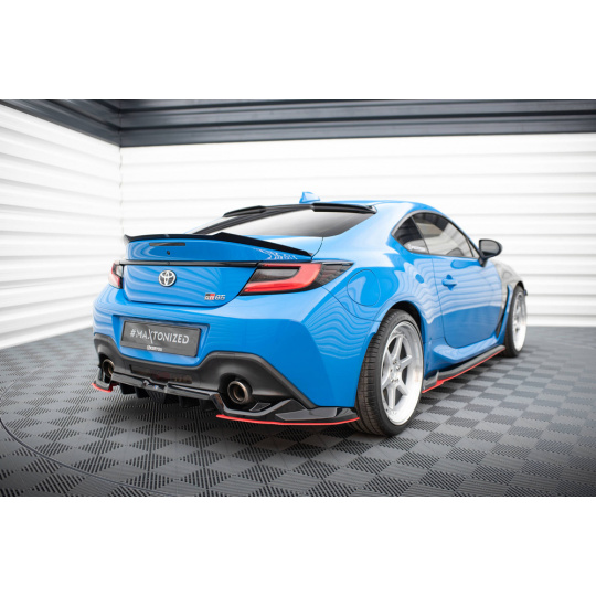 Maxton Design středový spoiler pod zadní nárazník s žebrováním v.2 pro Toyota GR86 Mk1, černý lesklý plast ABS, s červenou linkou
