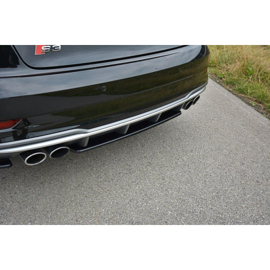 Maxton Design středový spoiler zadního nárazníku pro Audi S3 8V FL, černý lesklý plast ABS
