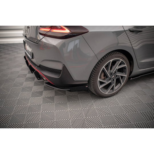 Maxton Design "Street Pro" boční difuzory pod zadní nárazník s křidélky pro Hyundai I30 MK3 Facelift, plast ABS bez povrchové úpravy, s červenou linkou, Fastback N-Line