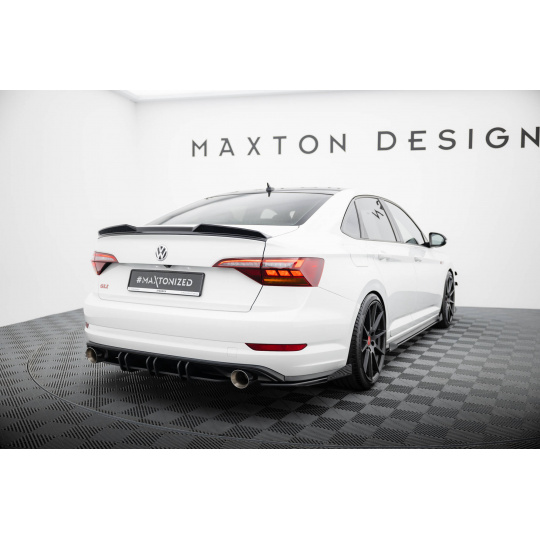 Maxton Design "Street Pro" boční difuzory pod zadní nárazník s křidélky pro Volkswagen Jetta Mk7 GLI, černý lesklý plast ABS, s černou a červenou linkou