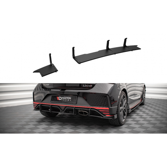 Maxton Design "Street Pro" difuzor zadního nárazníku pro Hyundai i20 N Mk3, plast ABS bez povrchové úpravy, s černou a červenou linkou