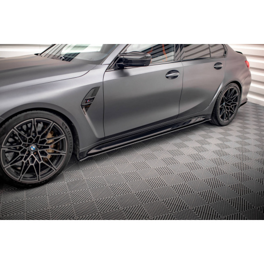 Maxton Design "Street Pro" difuzory pod boční prahy pro BMW M3 G80, plast ABS bez povrchové úpravy, s červenou linkou