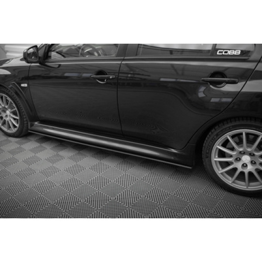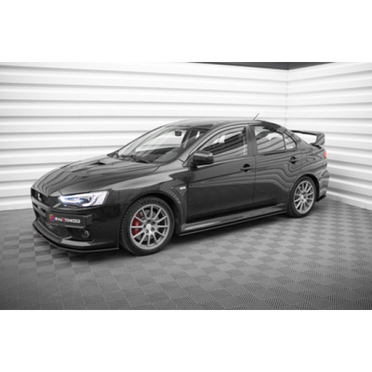 Maxton Design "Street Pro" difuzory pod boční prahy pro Mitsubishi Lancer Evo Mk10, plast ABS bez povrchové úpravy, s černou a červenou linkou