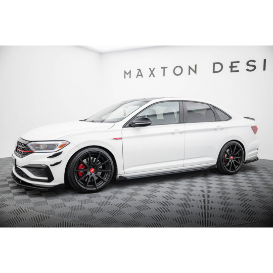 Maxton Design "Street Pro" difuzory pod boční prahy s křidélky pro Volkswagen Jetta Mk7 GLI, černý lesklý plast ABS, s černou a červenou linkou