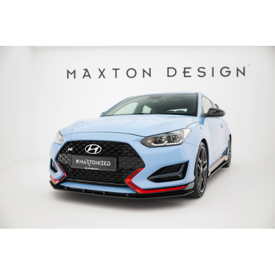 Maxton Design "Street Pro" spoiler pod přední nárazník pro Hyundai Veloster N Mk2, plast ABS bez povrchové úpravy, s černou a červenou linkou