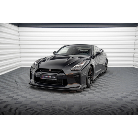 Maxton Design "Street Pro" spoiler pod přední nárazník pro Nissan GT-R R35 Facelift, plast ABS bez povrchové úpravy, s červenou linkou