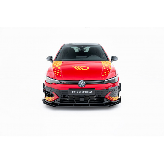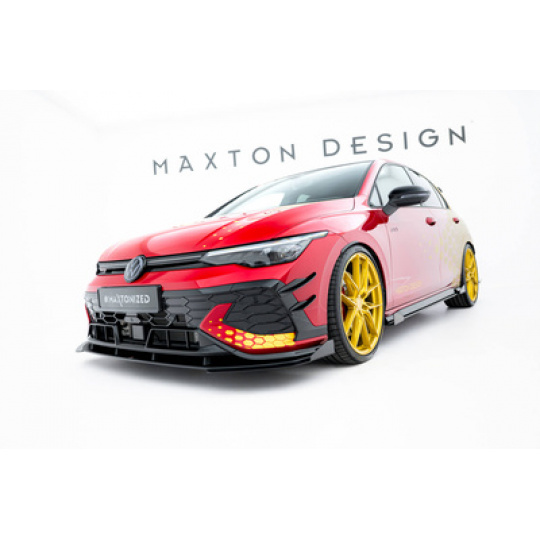 Maxton Design "Street Pro" spoiler pod přední nárazník s křidélky pro Volkswagen Golf GTI Mk8 Facelift, plast ABS bez povrchové úpravy, Clubsport, s černou a červenou linkou