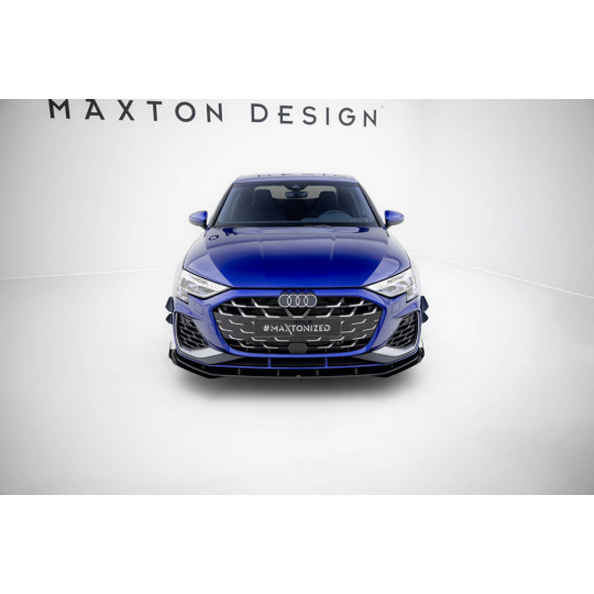 Maxton Design "Street Pro" spoiler pod přední nárazník s křidélky ver.1 pro Audi A3 8Y Facelift, plast ABS bez povrchové úpravy, S-Line / S-Line Sedan