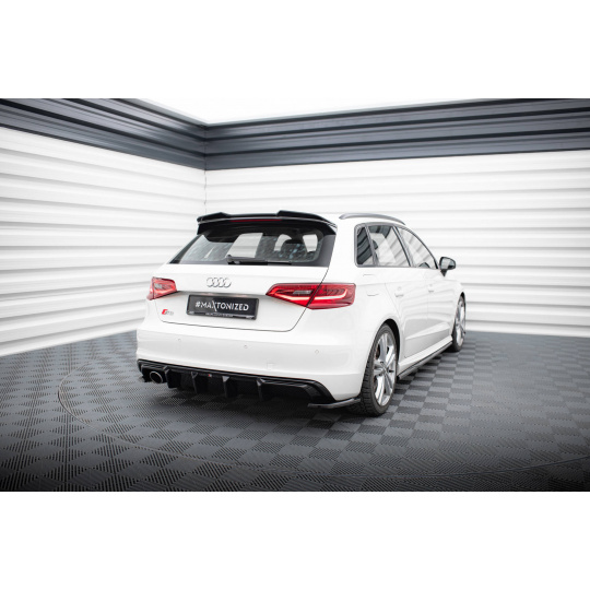 Maxton Design vložka zadního nárazníku pro Audi A3 8V, černý lesklý plast ABS, S-Line Sportback, verze s jednoduchou koncovkou na jedné straně