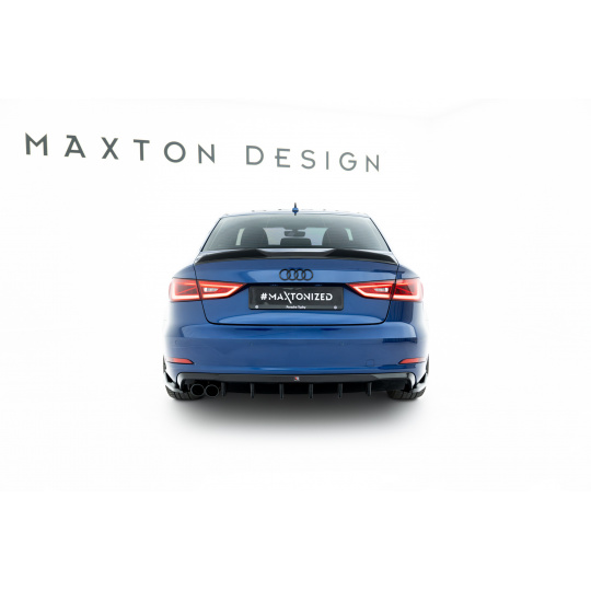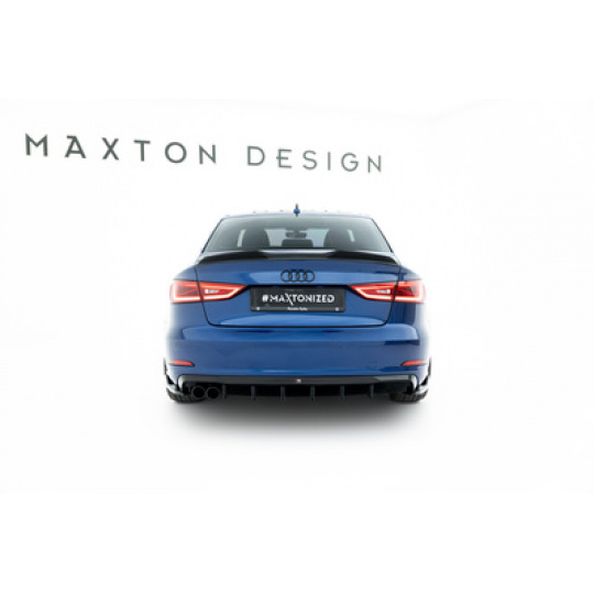 Maxton Design vložka zadního nárazníku pro Audi A3 8V, černý lesklý plast ABS, Sedan, verze s dvojitou koncovkou na jedné straně