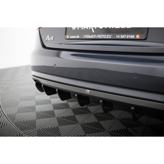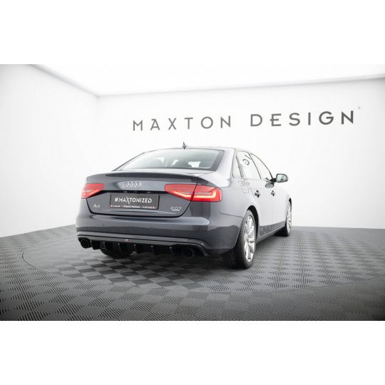 Maxton Design vložka zadního nárazníku pro Audi A4 B8 FL, černý lesklý plast ABS, Sedan / Avant, verze s jednoduchými výfuky na obou stranách