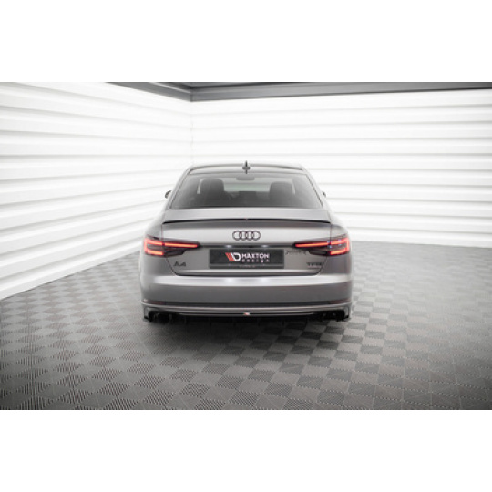 Maxton Design vložka zadního nárazníku pro Audi A4 B9, černý lesklý plast ABS, S-Line Sedan / S-line Avant, verze s jednoduchou koncovkou na jedné straně