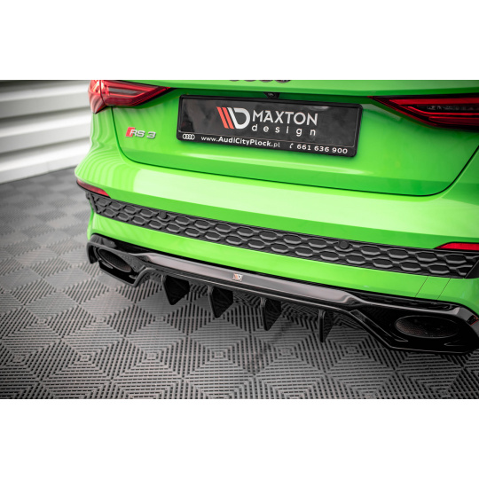 Maxton Design vložka zadního nárazníku pro Audi RS3 8Y, černý lesklý plast ABS, Sedan / Sportback