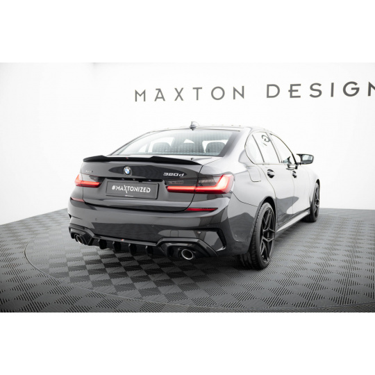 Maxton Design vložka zadního nárazníku pro BMW řada 3 G20 M-Pack, G21 M-Pack, černý lesklý plast ABS, Sedan/Touring, pro vozy bez tažného zařízení